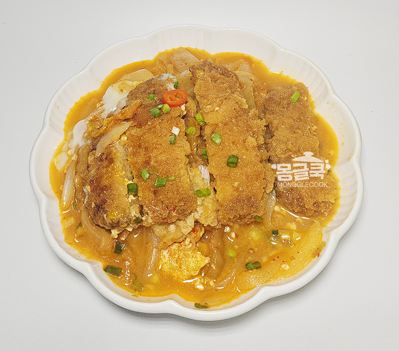 바삭한 돈까스와 칼칼한 김치 국물이 만나 따뜻하면서도 든든한 한 끼가 완성되었어요.
