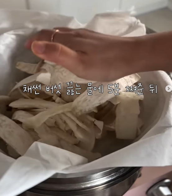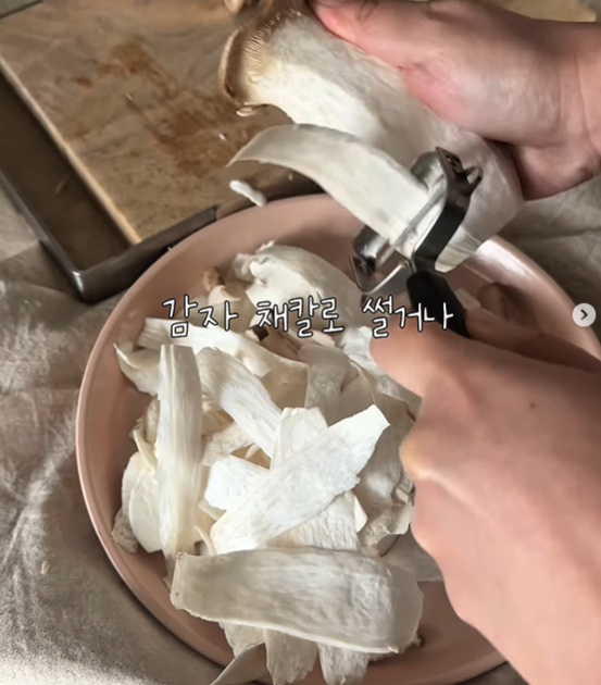 칼로 얇게 썰어줘도 좋아요.