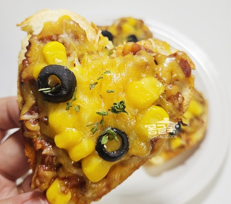 톡톡 터지는 식감이 피자 토스트의 맛을 살려줘요.