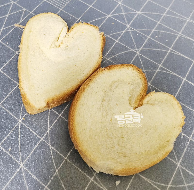 하트 모양을 더 예쁘게 만들려면 정사각형 식빵이 좋아요!