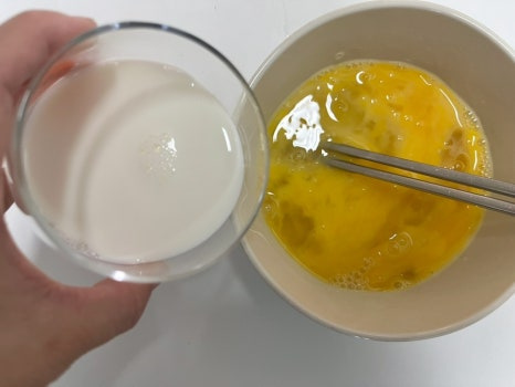 우유가 들어가면 계란이 부드러워져서 맛있어요.