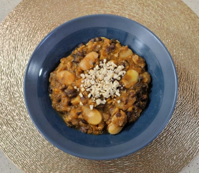 "잠두콩, 작두콩"이라고도 불리는 파바빈은 , 단백질, 식이섬유, 각종 미네랄이 풍부한 영양 콩으로 알려져 있습니다. 100g당. 단백질 25g, 탄수화물 58g 정도로 칼로리가 크게 낮은 편은 아니지만, 식이섬유 풍부한 늙은 호박과의 조합은 좋습니다. 찹쌀대신 오트밀을 소량 넣은 "저탄수.고단백 호박범벅"으로 오독오독 씹히는 파바빈의 식감이 좋은, 별미 영양죽으로 추천합니다.