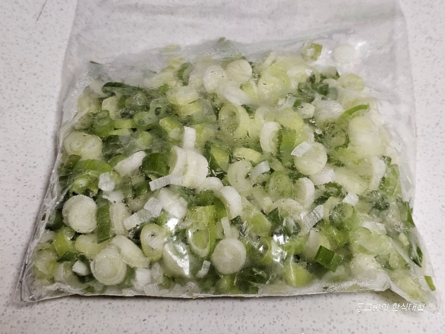 재워 둔 고기를 한 번 먹을 만큼 올리고