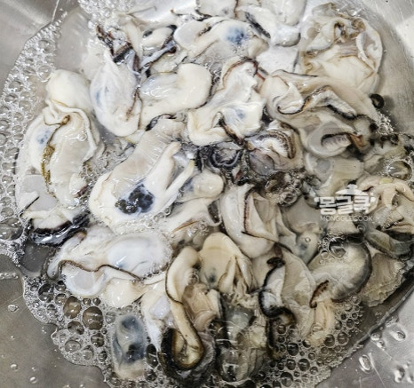 시원한 수돗물보다 소금물에 씻어야 굴 풍미가 덜 빠져 맛이 훨씬 좋아요.