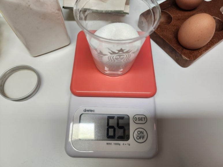 무염버터 100g / 설탕 반컵 60-70g / 소금 2g / 계란 30g