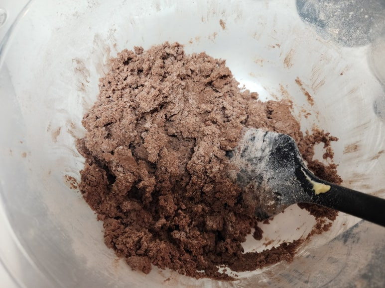 쿠키의 반죽은 하얀가루가 안 보일때 까지만 반죽을 대충 잘 섞어준다 너무 자주 뒤섞어주면 죽처럼 됨 주의!!!