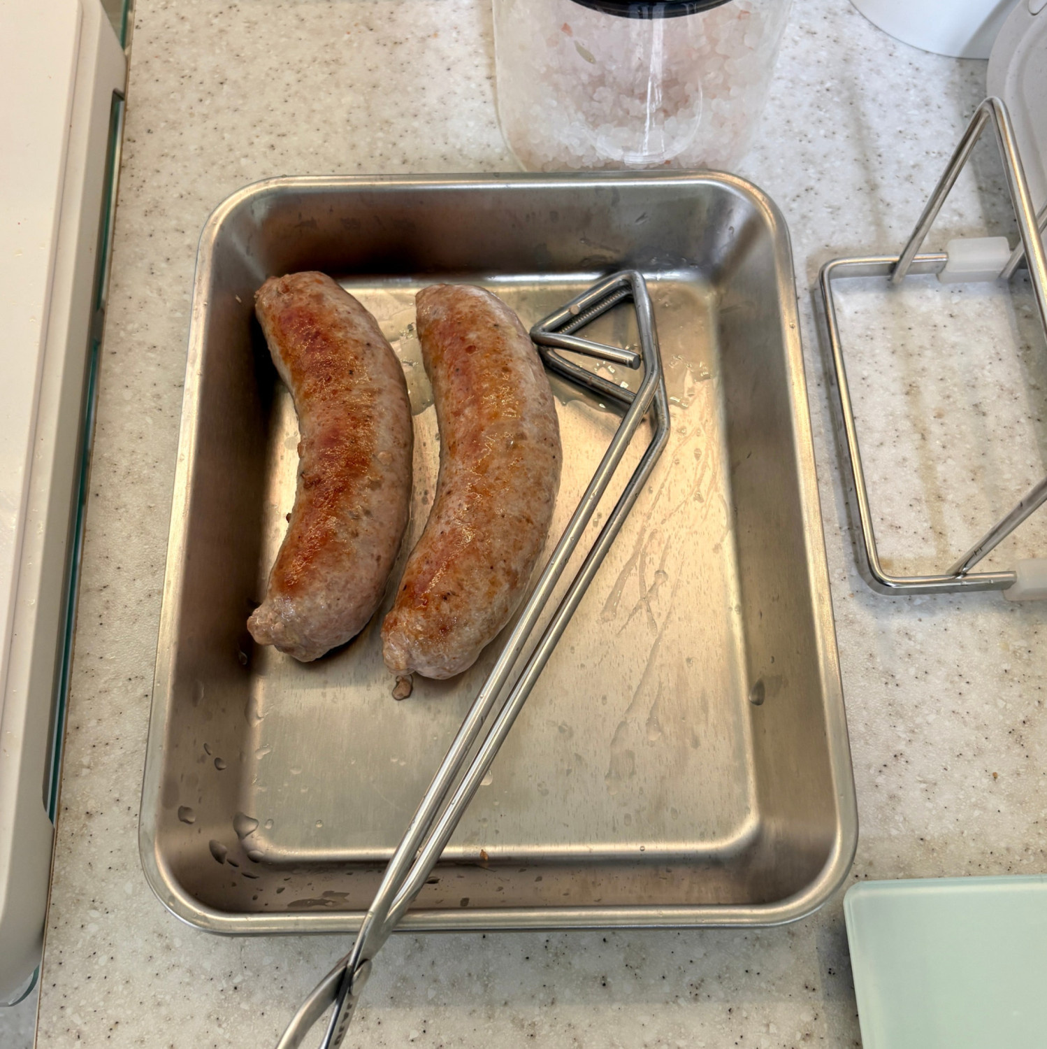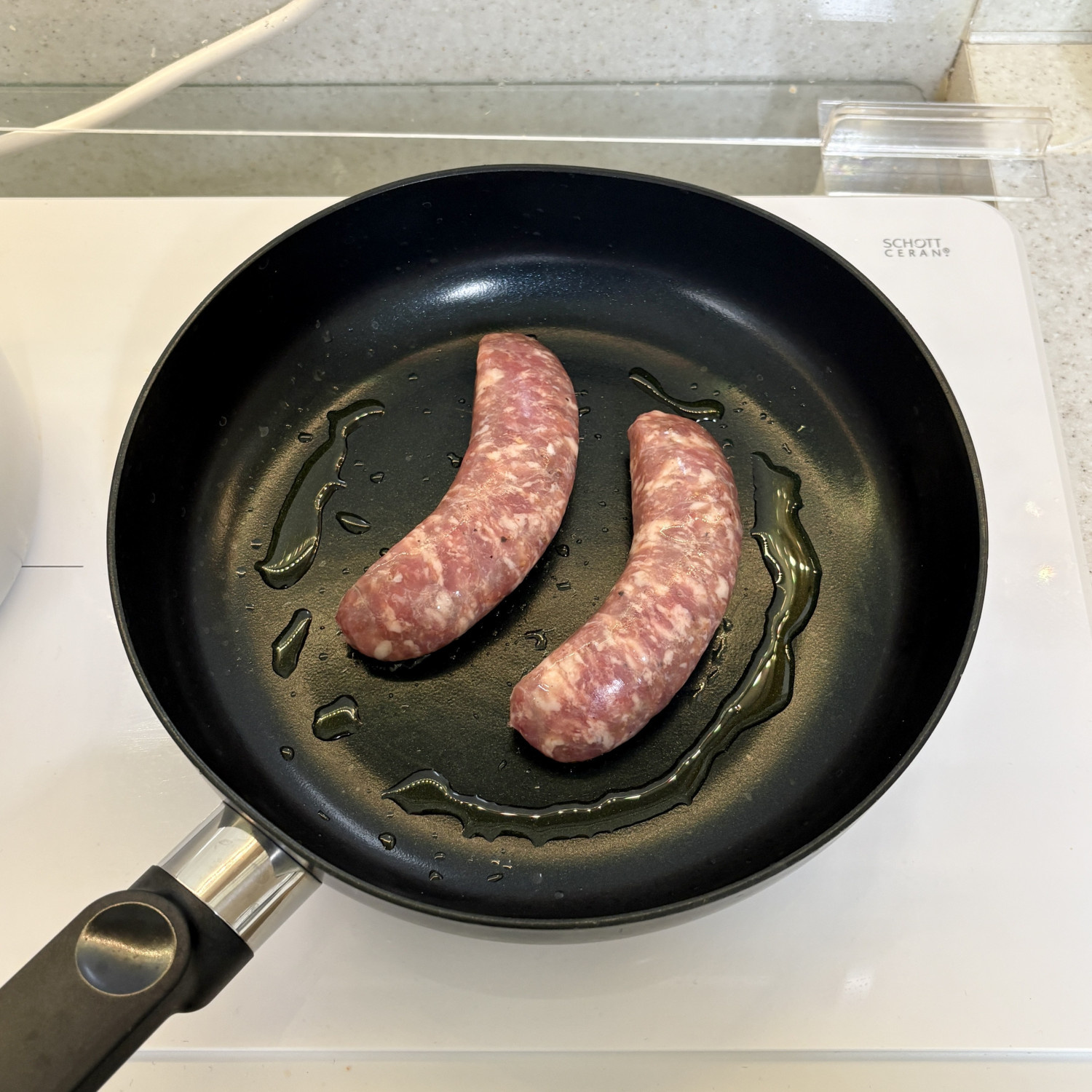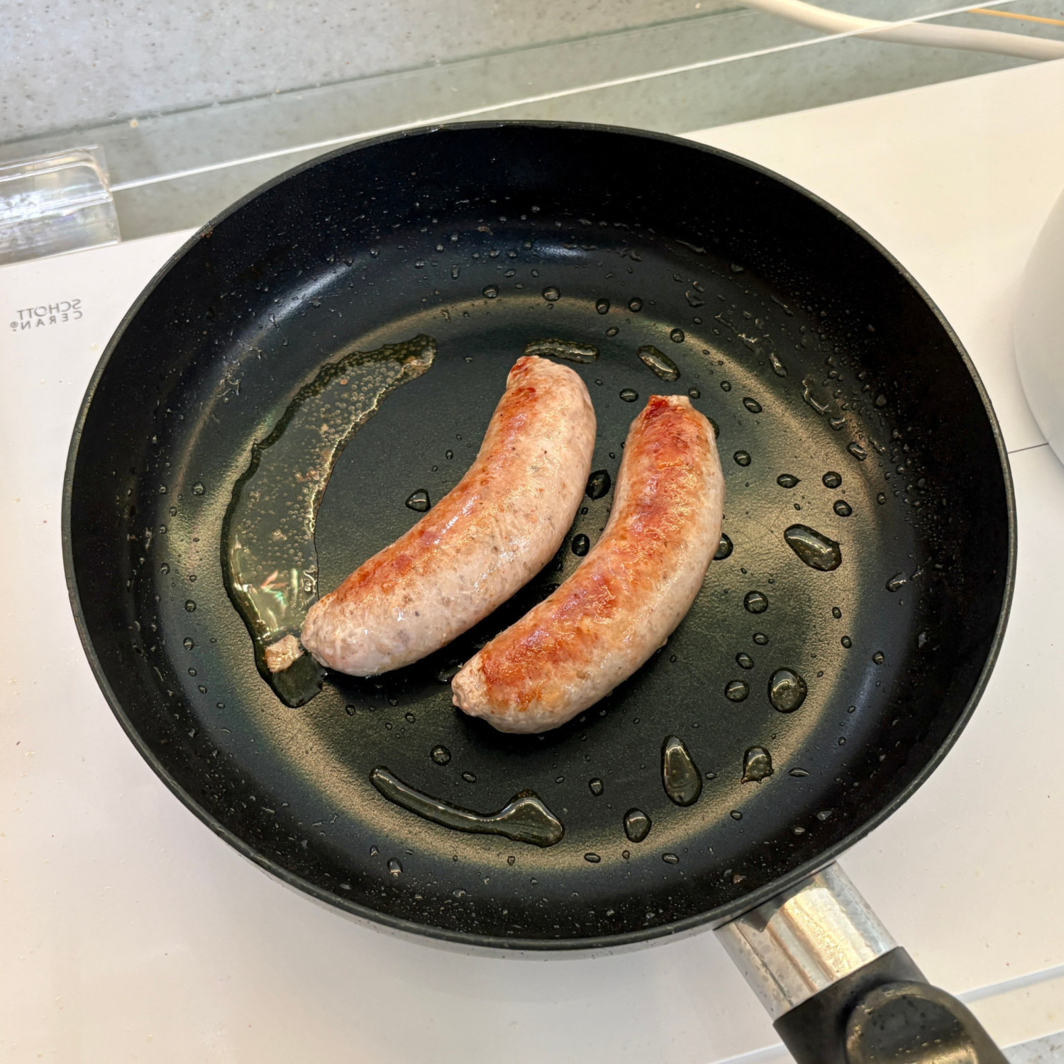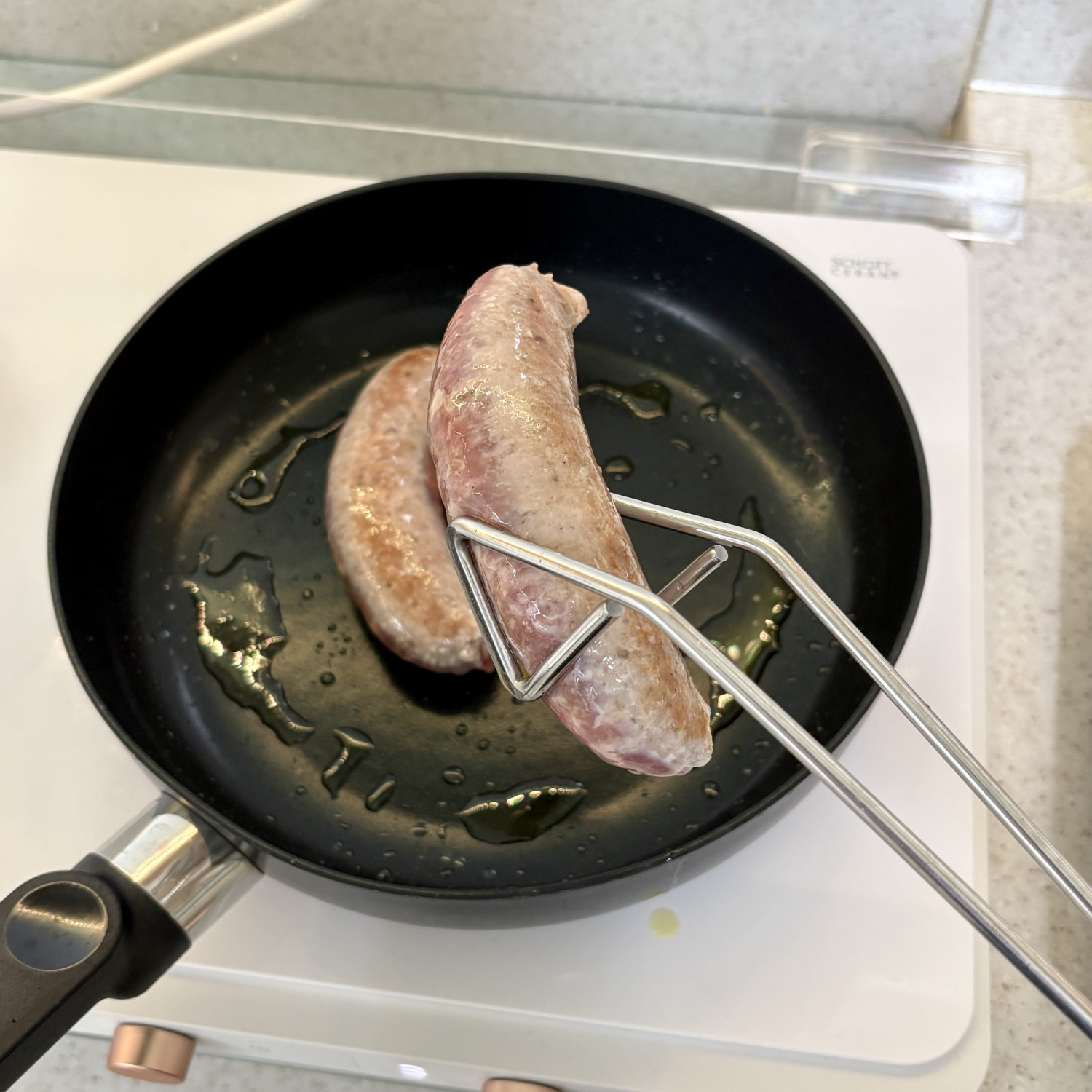 소시지는 절대 칼집을 내지 말아야 해요. = 육즙흘러내려요.