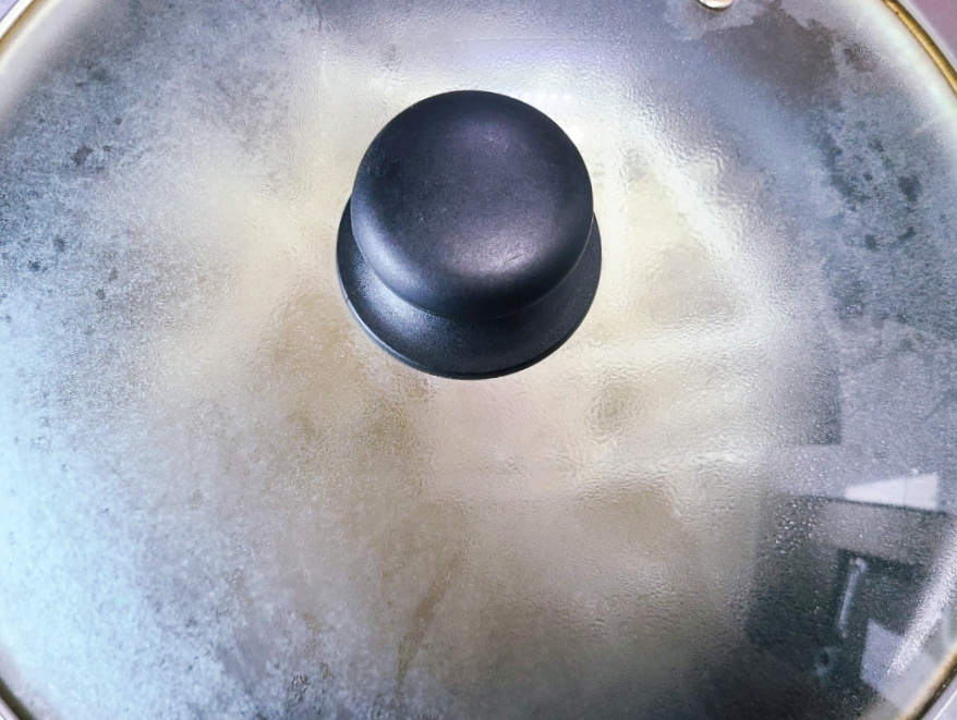 냄비 뚜껑을 덮은 다음에 가스불 중약불에서 5분간 끓여줍니다.