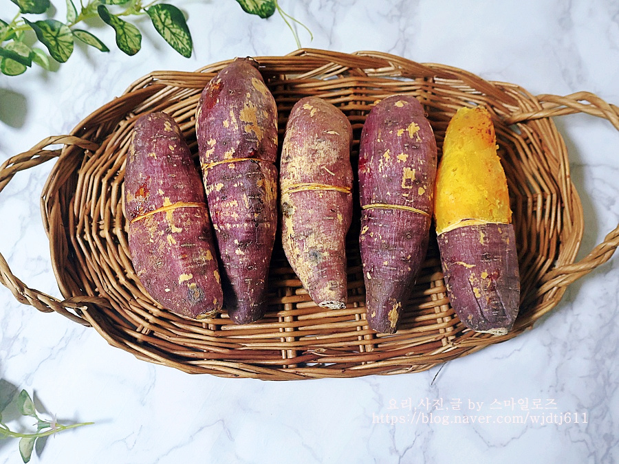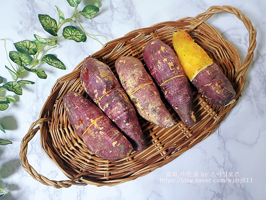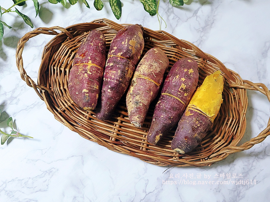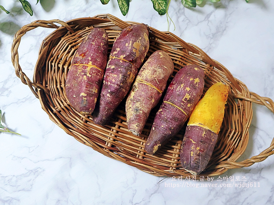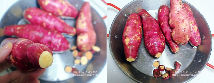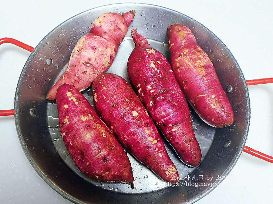 고구마는 수세미로 깨끗하게 닦아서 찌거나 굽게 되면