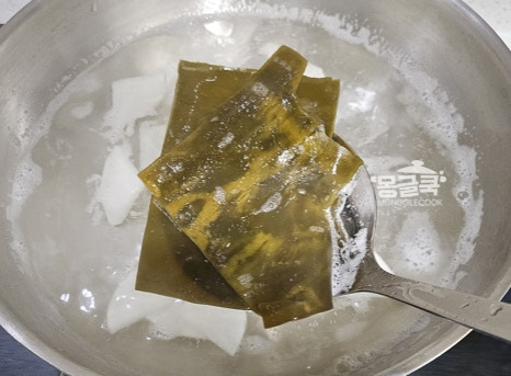 여기에 다시마 1~2조각을 넣고 5~10분만 우린 뒤 건져내면