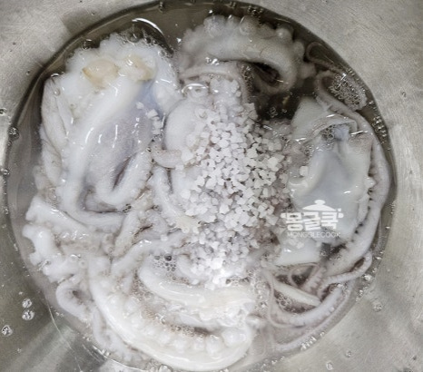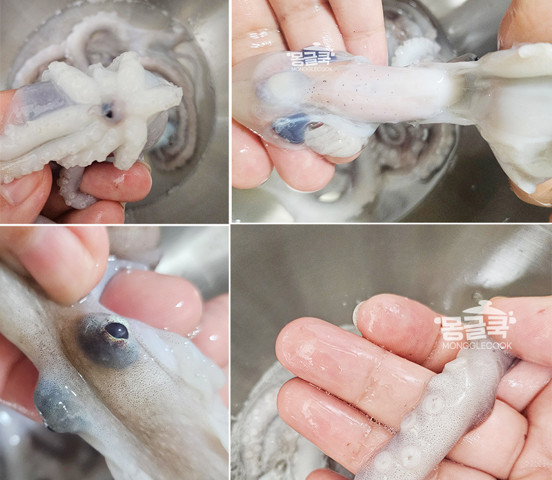 다리 빨판 사이 미끈한 점액질과 이물질이 밀가루와 함께 싹 제거되어