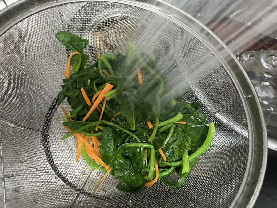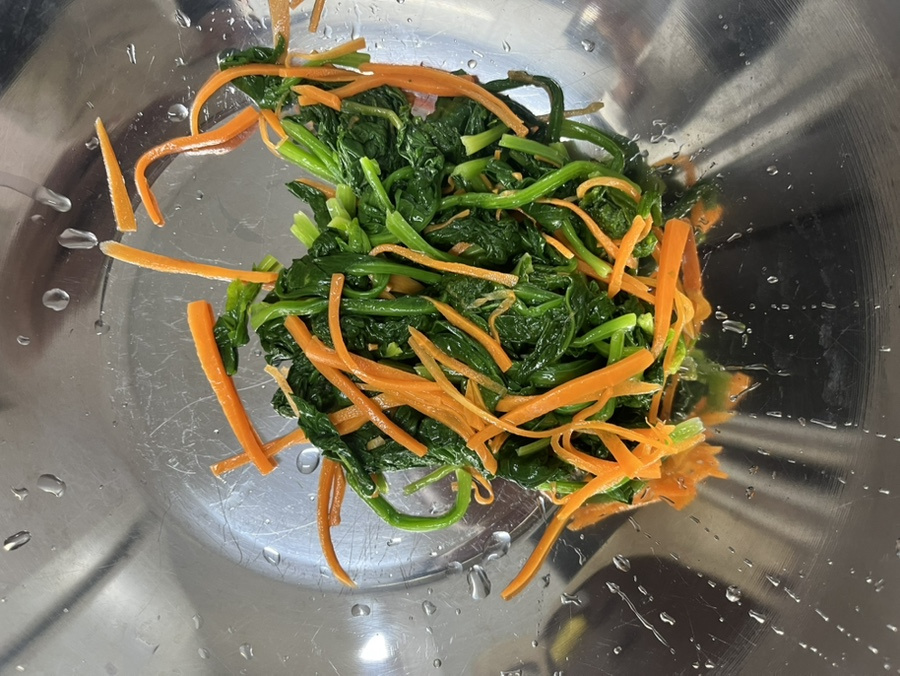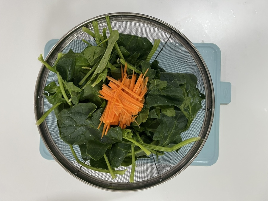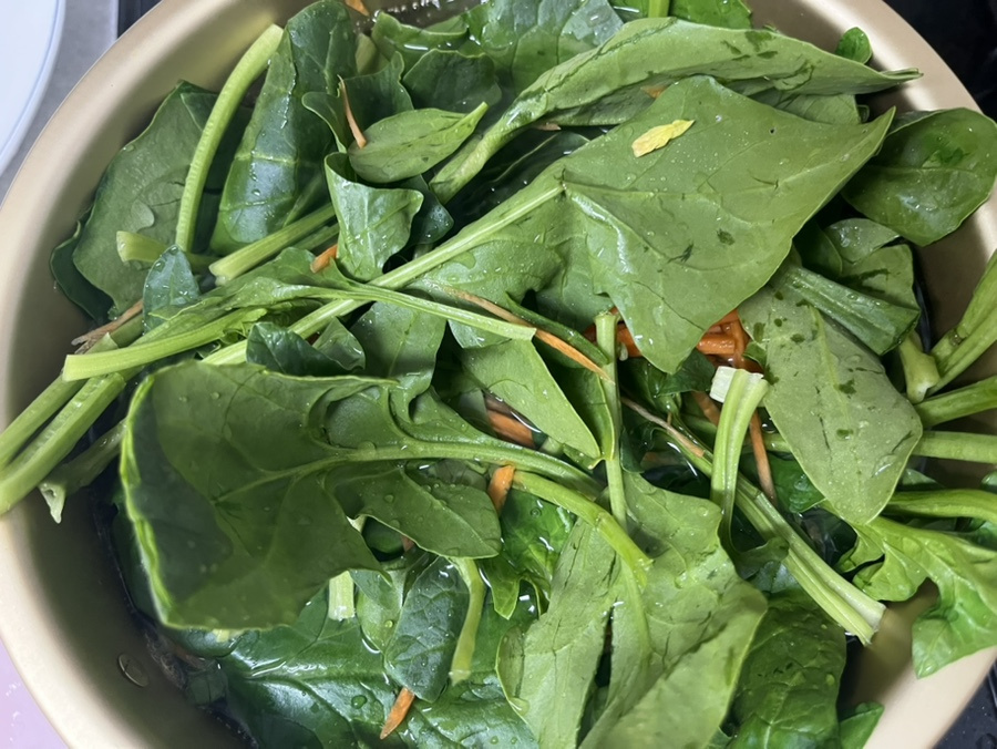 시금치는 물에 담궈 여러번 흐르는 물에 세척해주세요.
