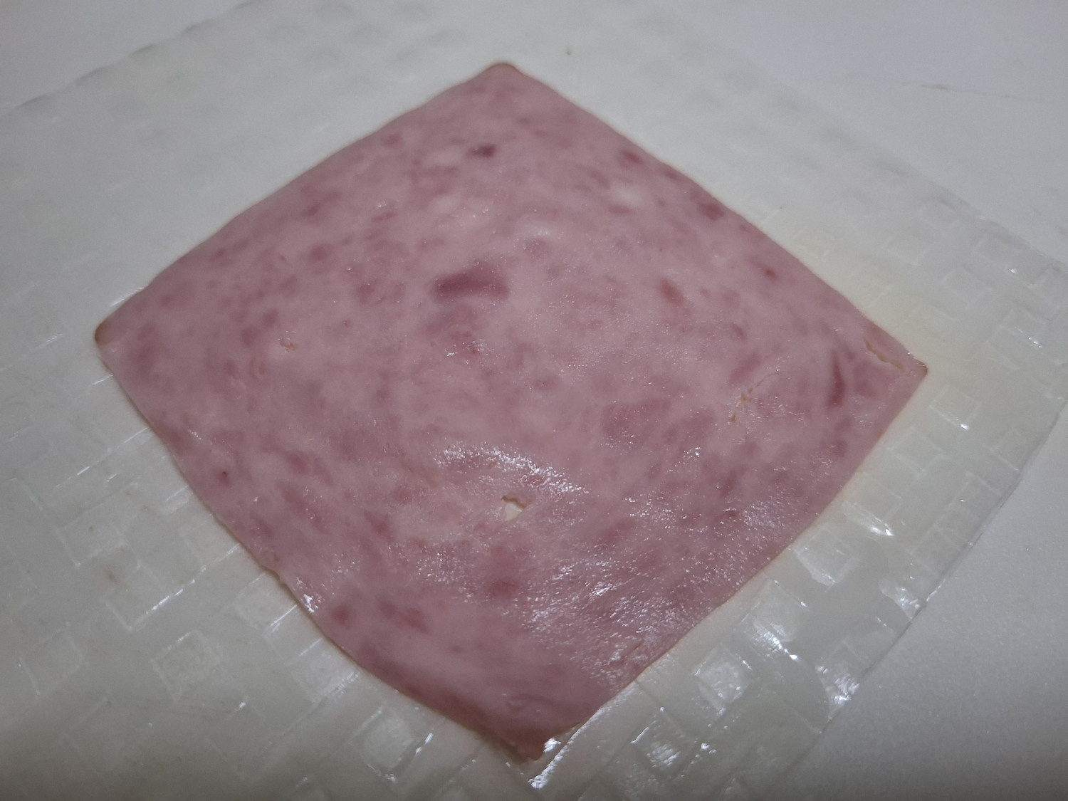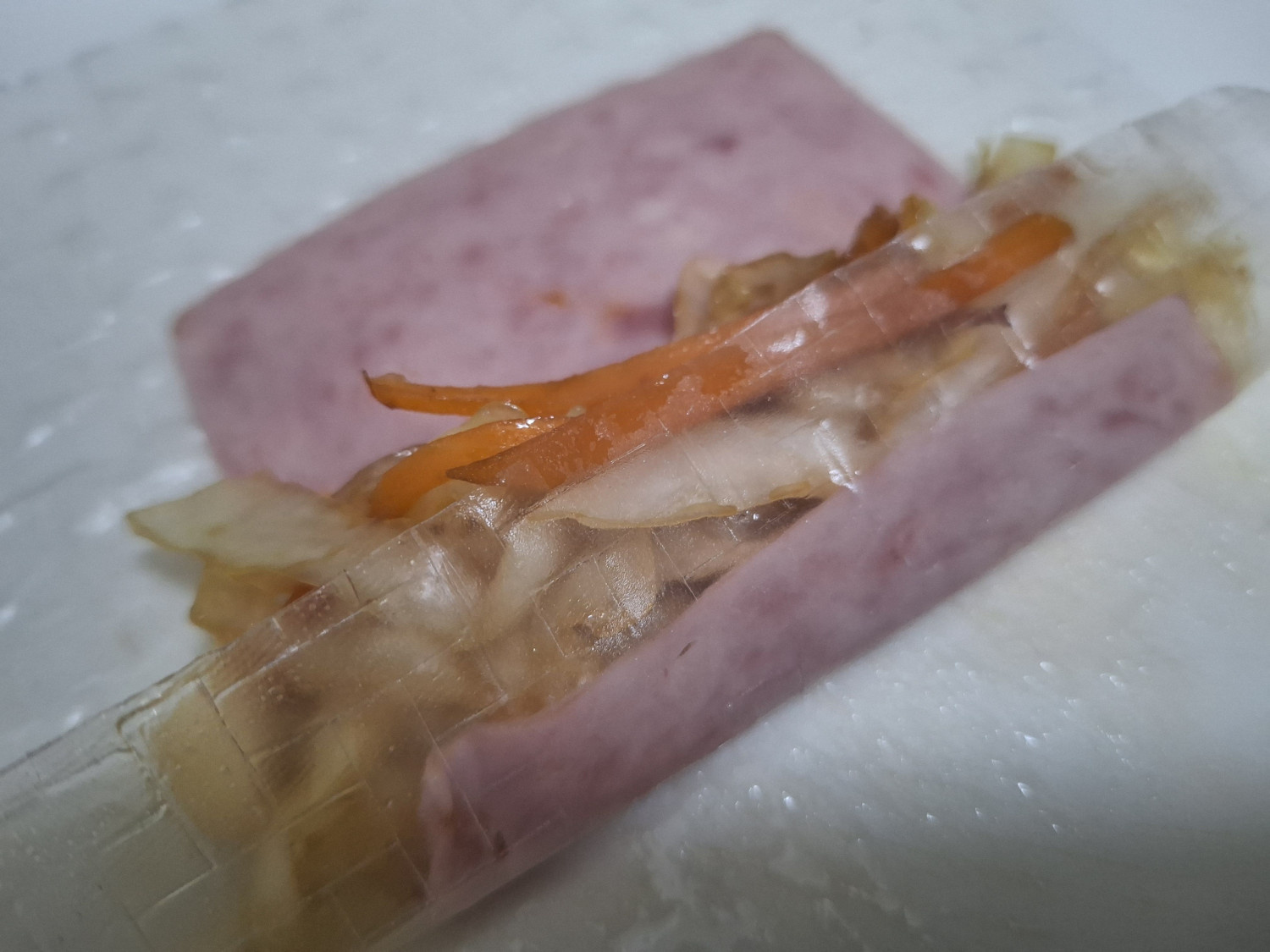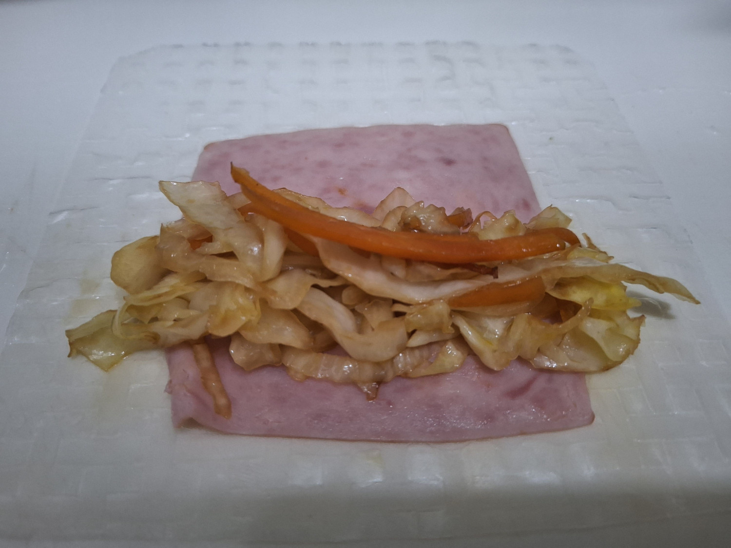 라이스페이퍼 접기는 올려둔 햄 가장자리를 기준으로 잡아주세요.