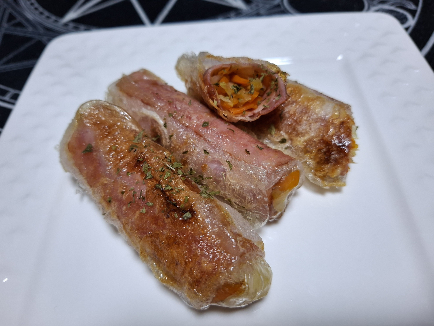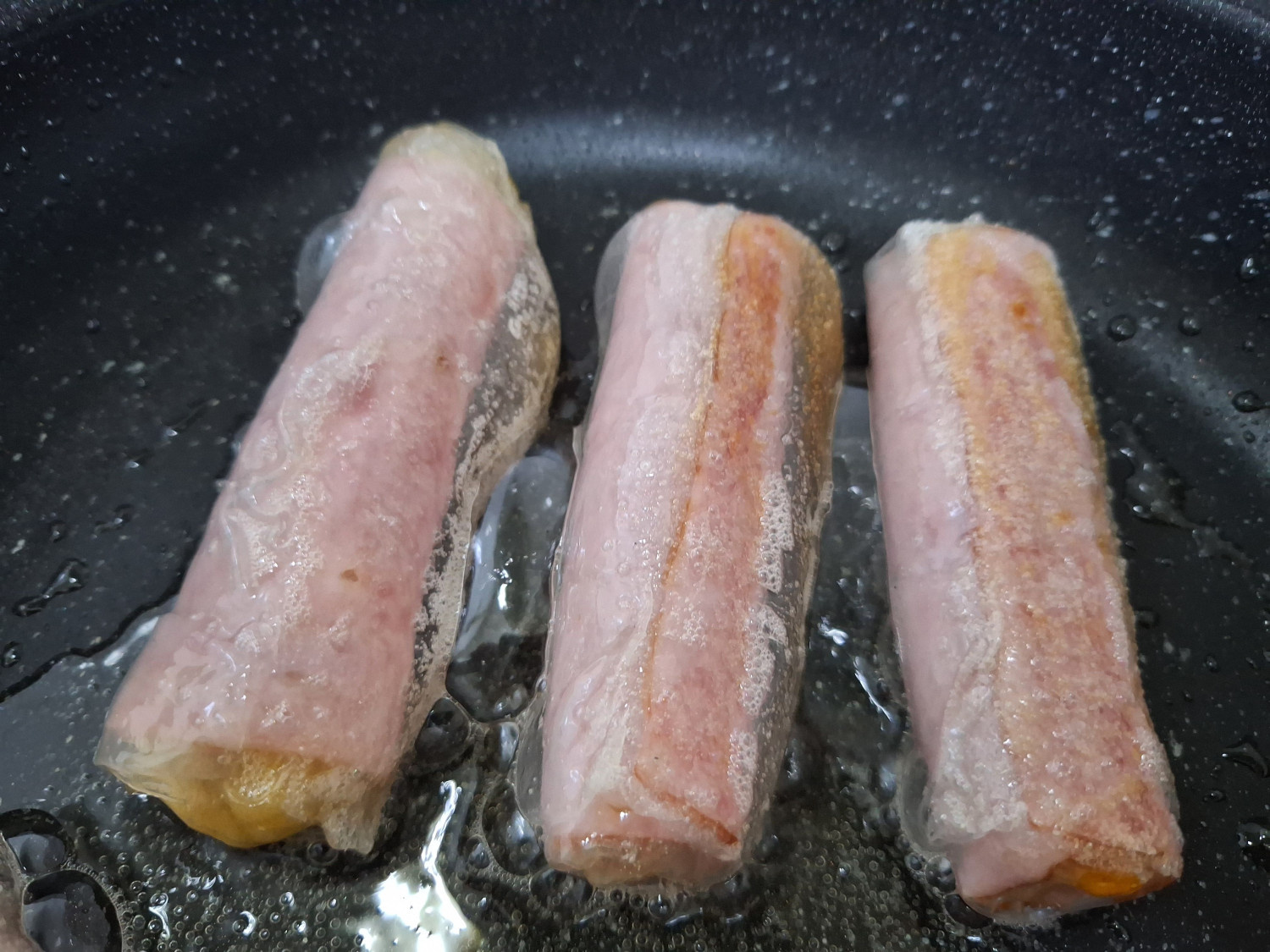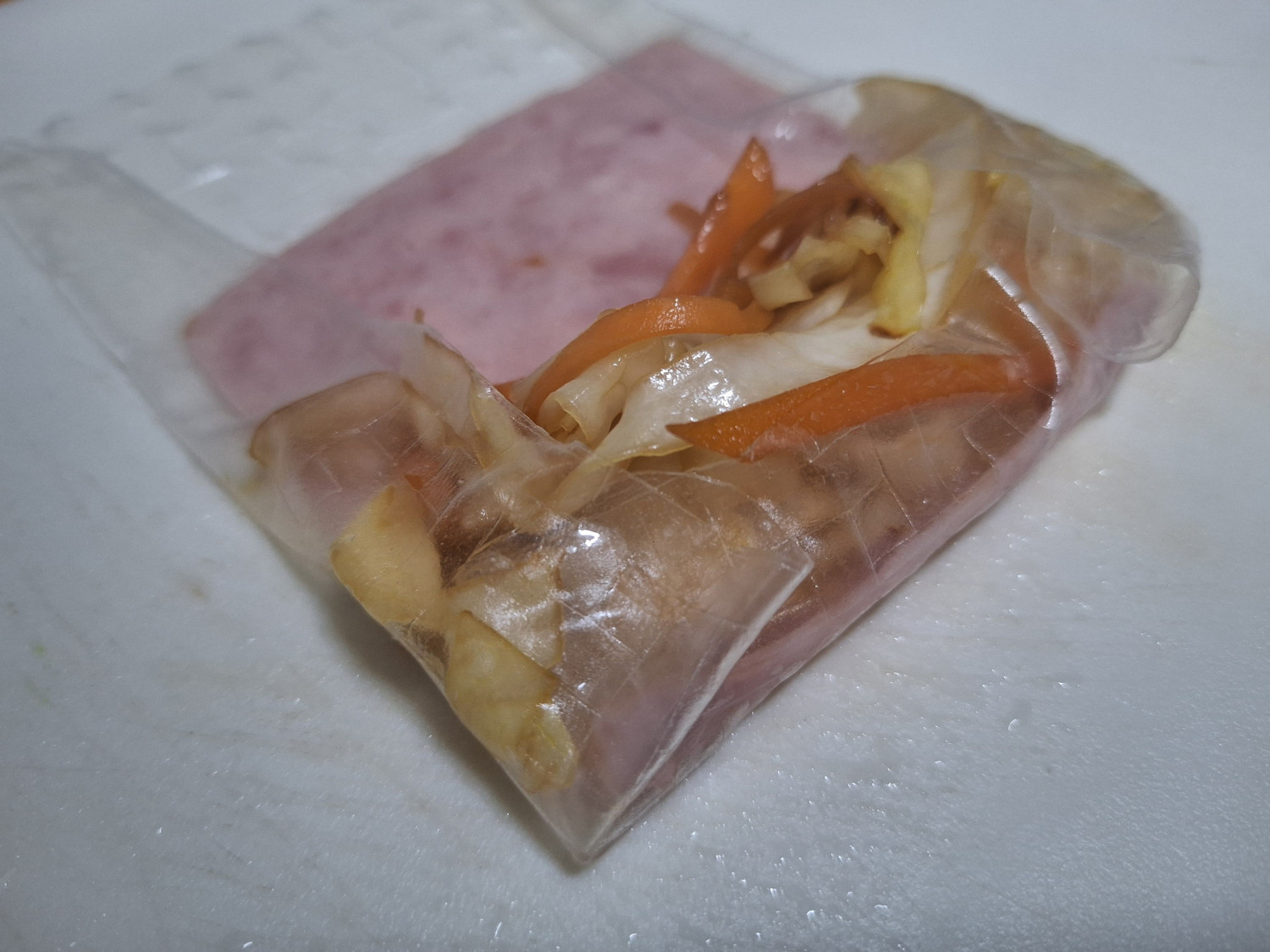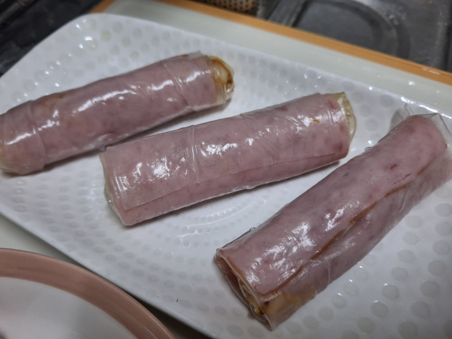 라이스페이퍼 접기는 올려둔 햄 가장자리를 기준으로 잡아주세요.