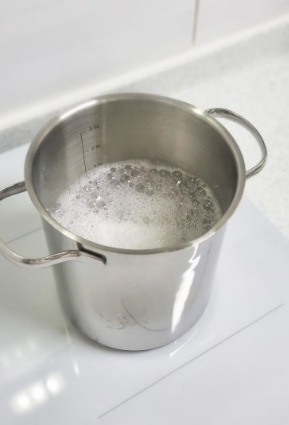 삶아둔 면에 면수한컵 붓고