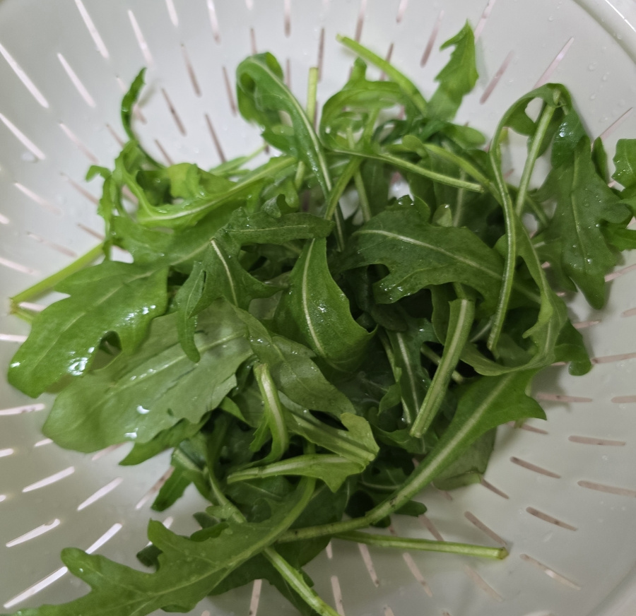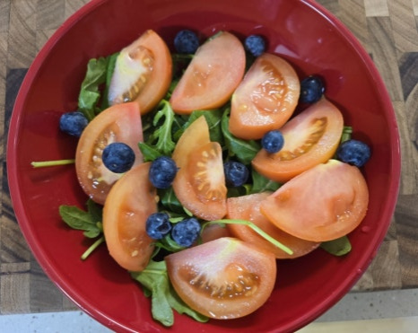 - 리코타치즈 80g 루콜라 한 줌 토마토 1개 블루베리 15알 , 샐러드드레싱 : 엑스트라 버진 올리브유 2 발사믹 식초 2 꿀 or 올리고당 1 , 계량 : 밥숟가락