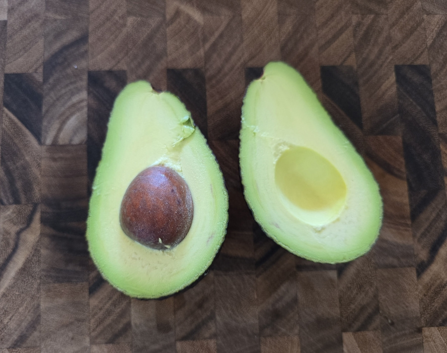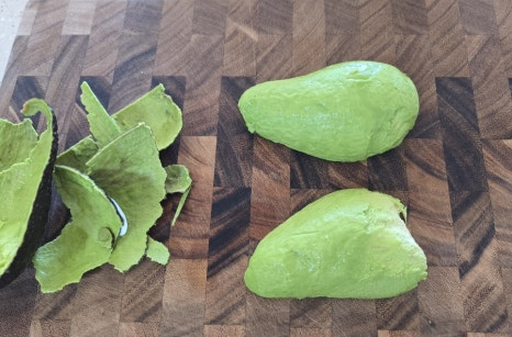 칼집이 들어간 아보카도를 양손으로 잡고 서로 반대 방향으로 살짝 비틀어 주세요.