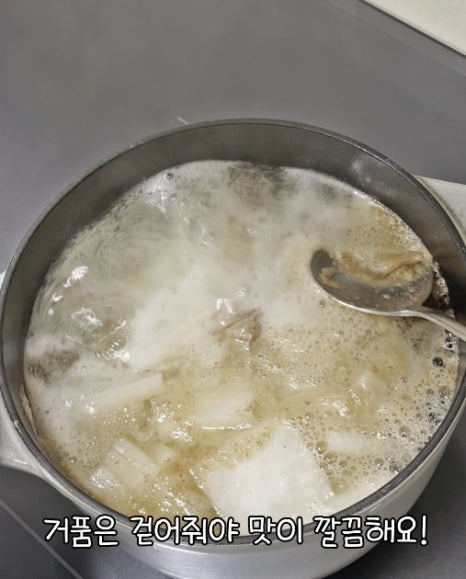 소고기가 익기 시작하면 거품이 올라오는데, 이 거품을 제거해주는 과정이 국물 맛을 깔끔하게 만드는 핵심이에요!
