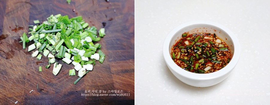 종지에 쪽파 썬 것과 간장 고춧가루 통깨 맛술을 넣고