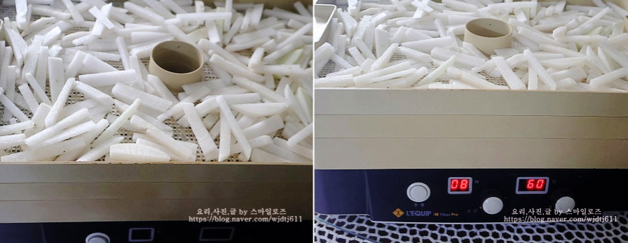 너무 온도가 놓으면 말리면서 무가 익을 수 있어서 60도가 적당한 것 같아요
