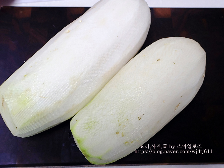 무는 껍질이 지저분해서 필러로 껍질을 벗긴 후