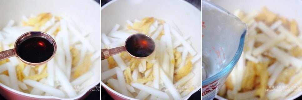 오늘은 무를 콩나물이나 황태처럼 길쭉하고 굵직하게 채 썰어 준비했어요