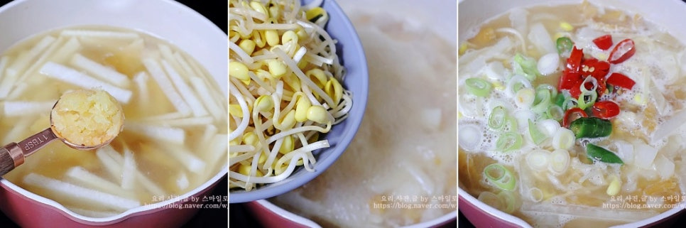 무는 꼭 넣고 끓여야 시원하고 국물이 깔끔해요