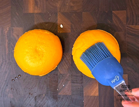 겉면에 기름 발라주세요.올리브유를 겉면에 발라주세요.
