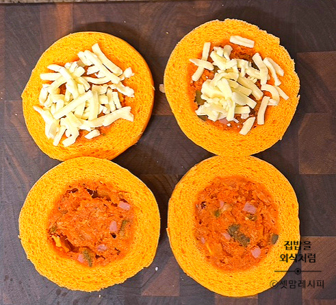 치즈 가득 넣고 뚜껑 덮어주세요.