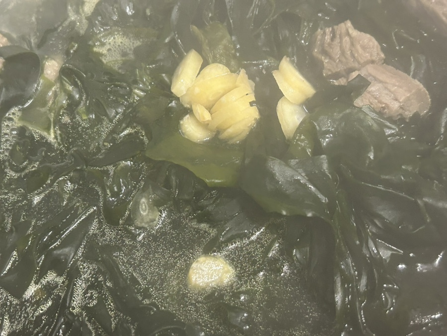 주재료는 미역과 소고기로 간단한데 시간이 깊은 맛을 뽑아내주니 깊은 바다맛도 나고 구수한 소고기 맛도 나고 쉽게 감지할 수 없지만 엠에스쥐속에 감춰진 감칠맛도 나요.