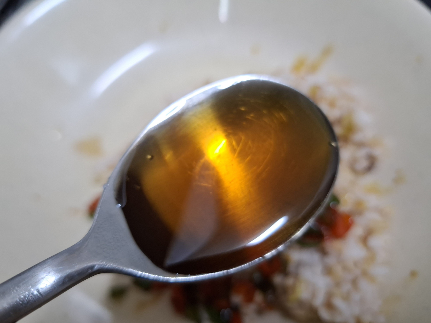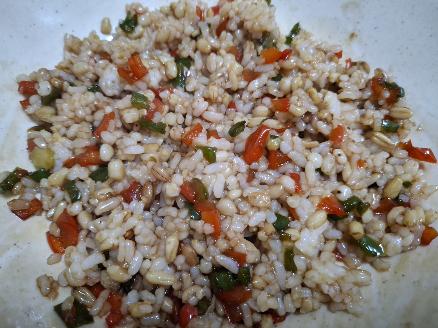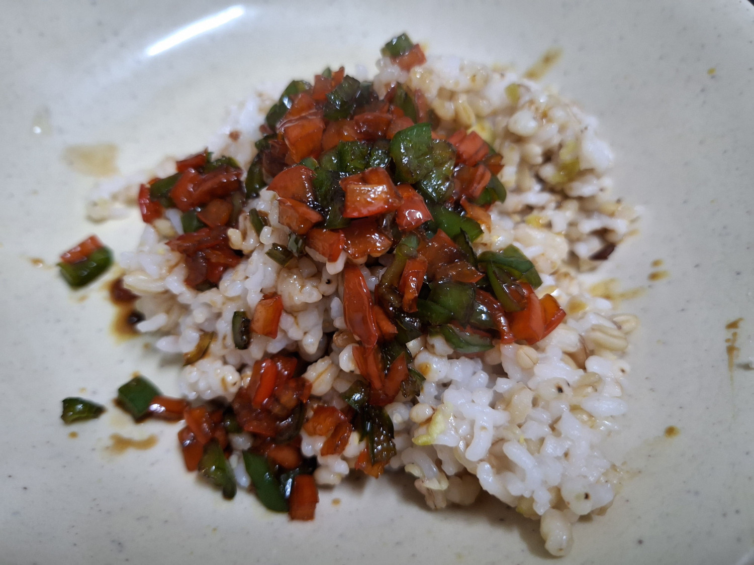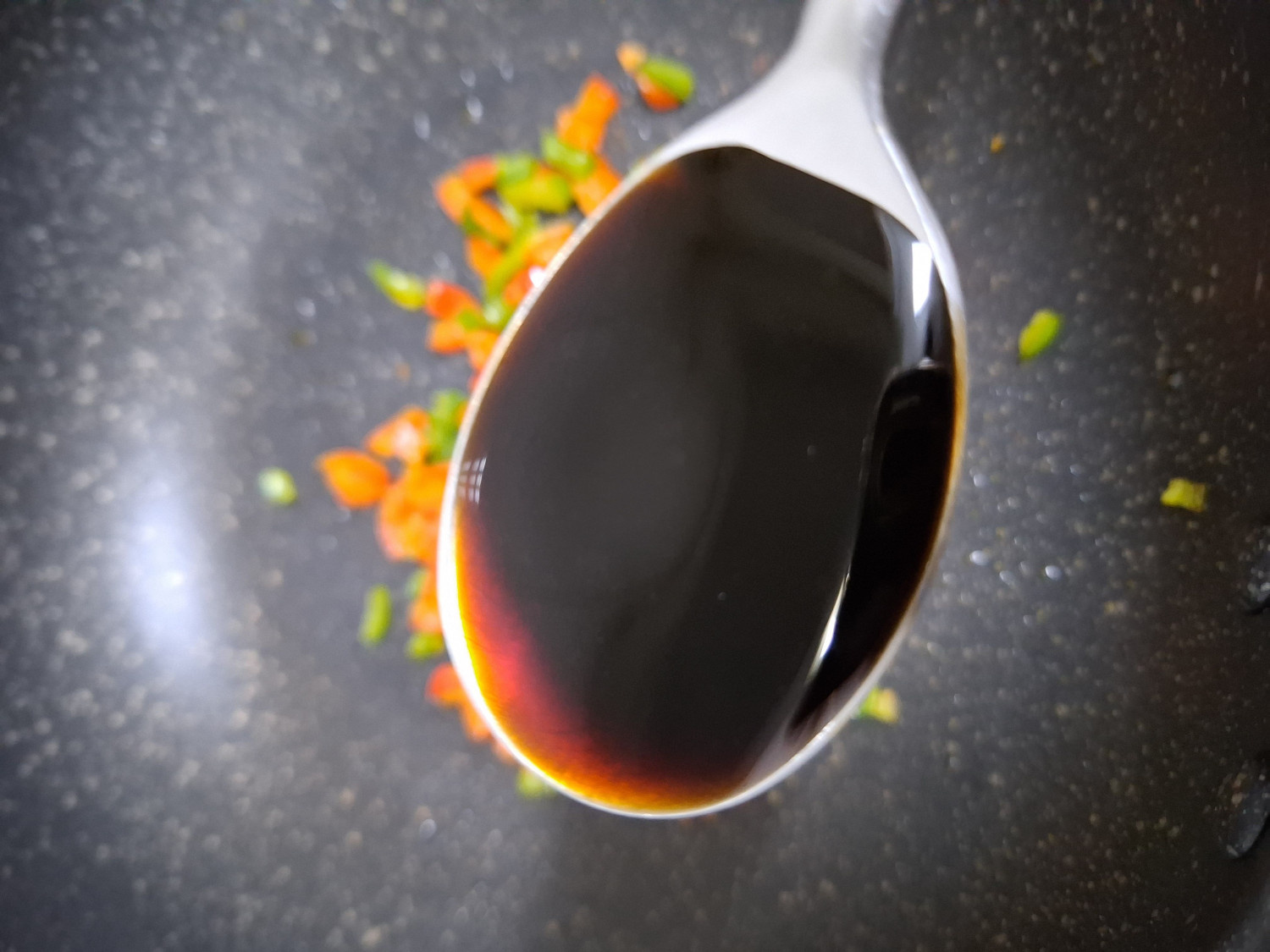 간장과 올리고당에 볶은 파프리카피망을 밥에 넣어줍니다.