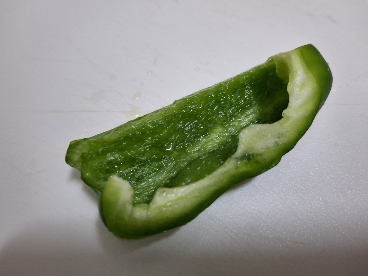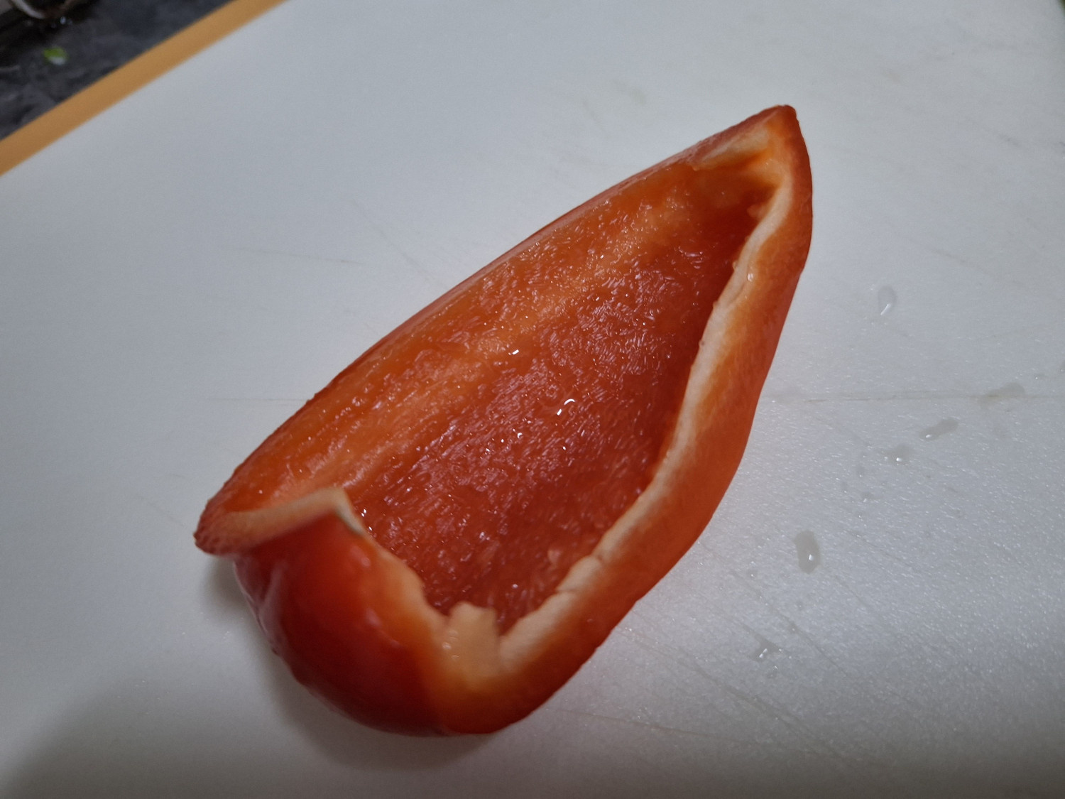 먼저 빨간 파프리카와 피망은 씨를 파내고 씻어주세요.