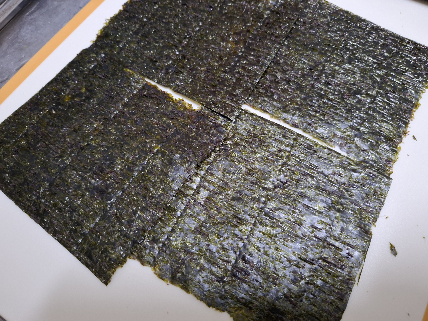 김은 1장당 4등분으로 접어서 잘라줍니다.