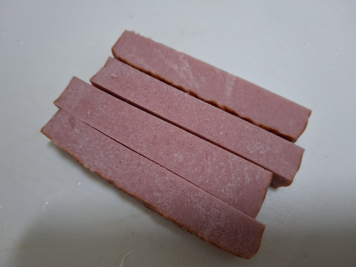 햄은 100g당 4조각으로 길게 썰어줍니다.