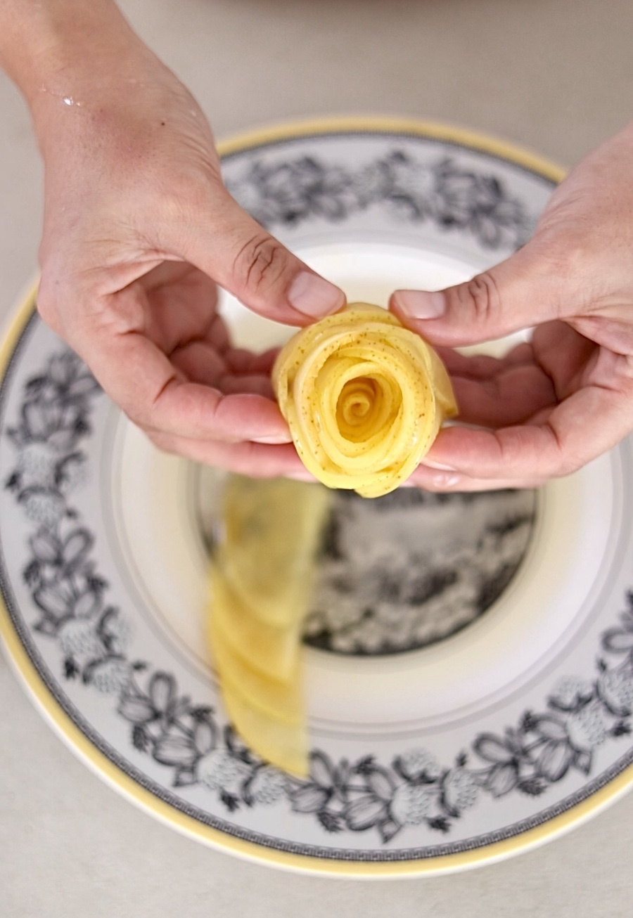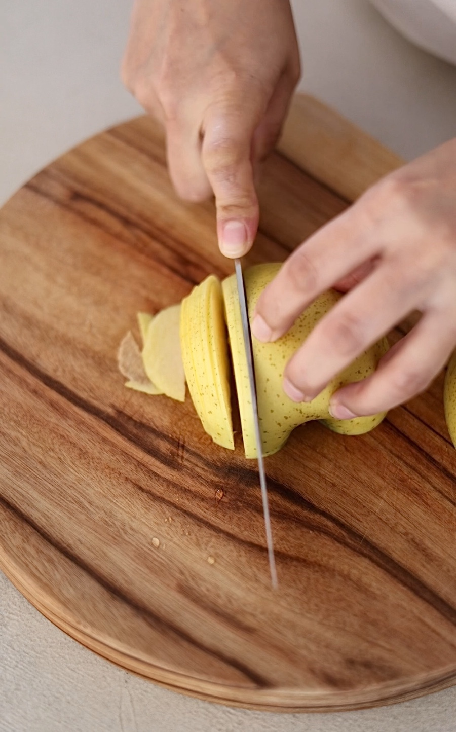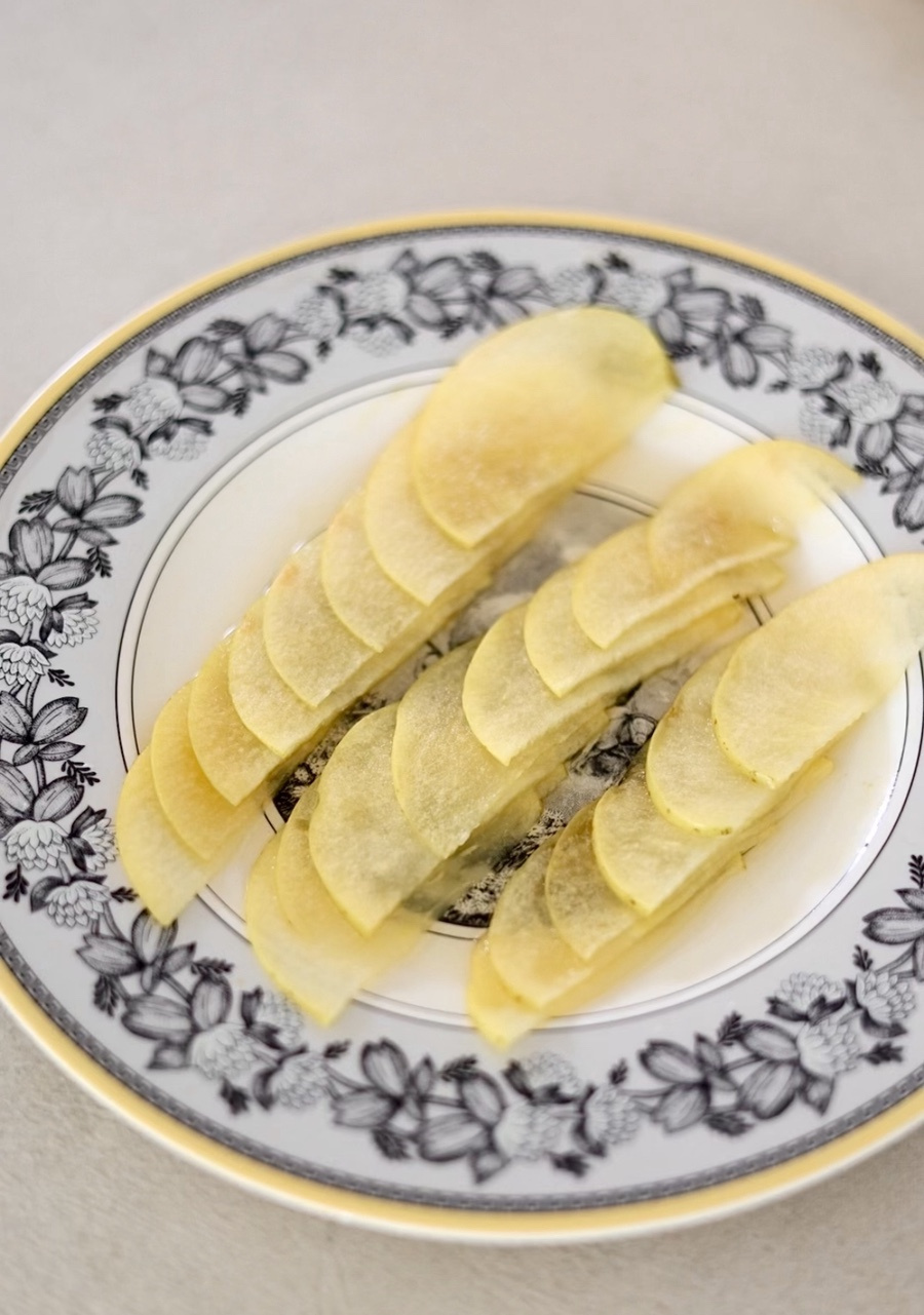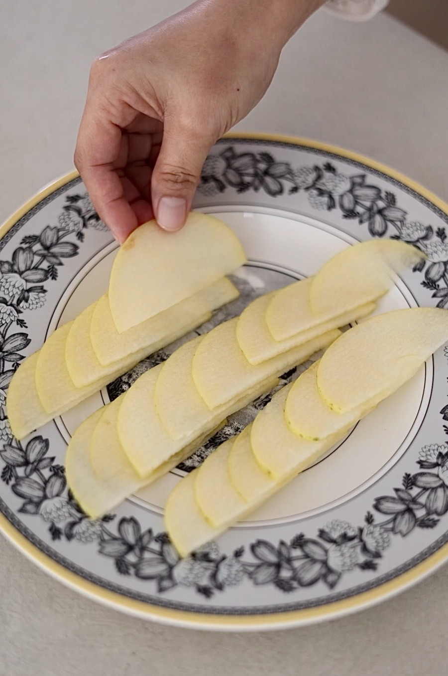 얇을수록 전자레인지에서 더 잘 익고 향도 진해져서 채칼을 사용하셔도 좋아요.