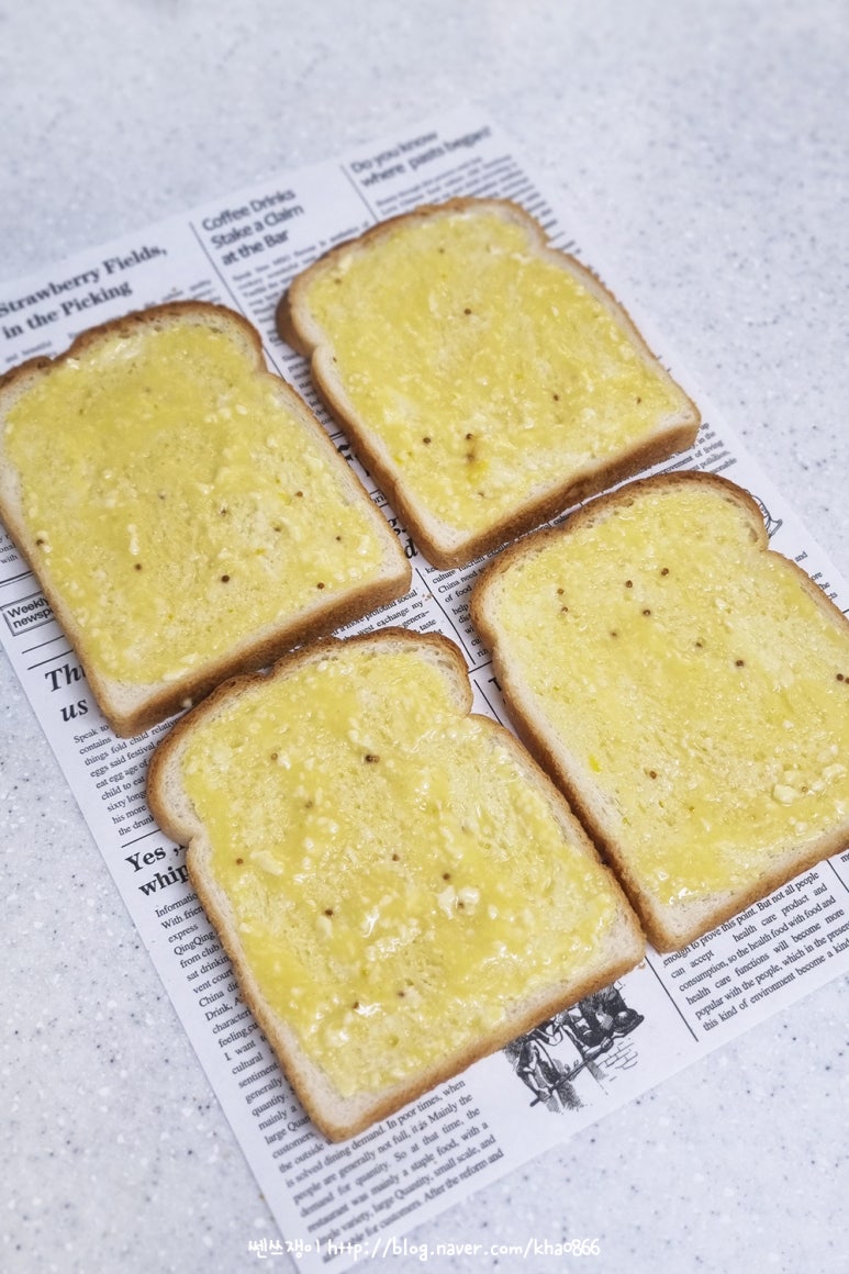 그리고 빵 윗면도 안쪽에 소스듬뿍발라