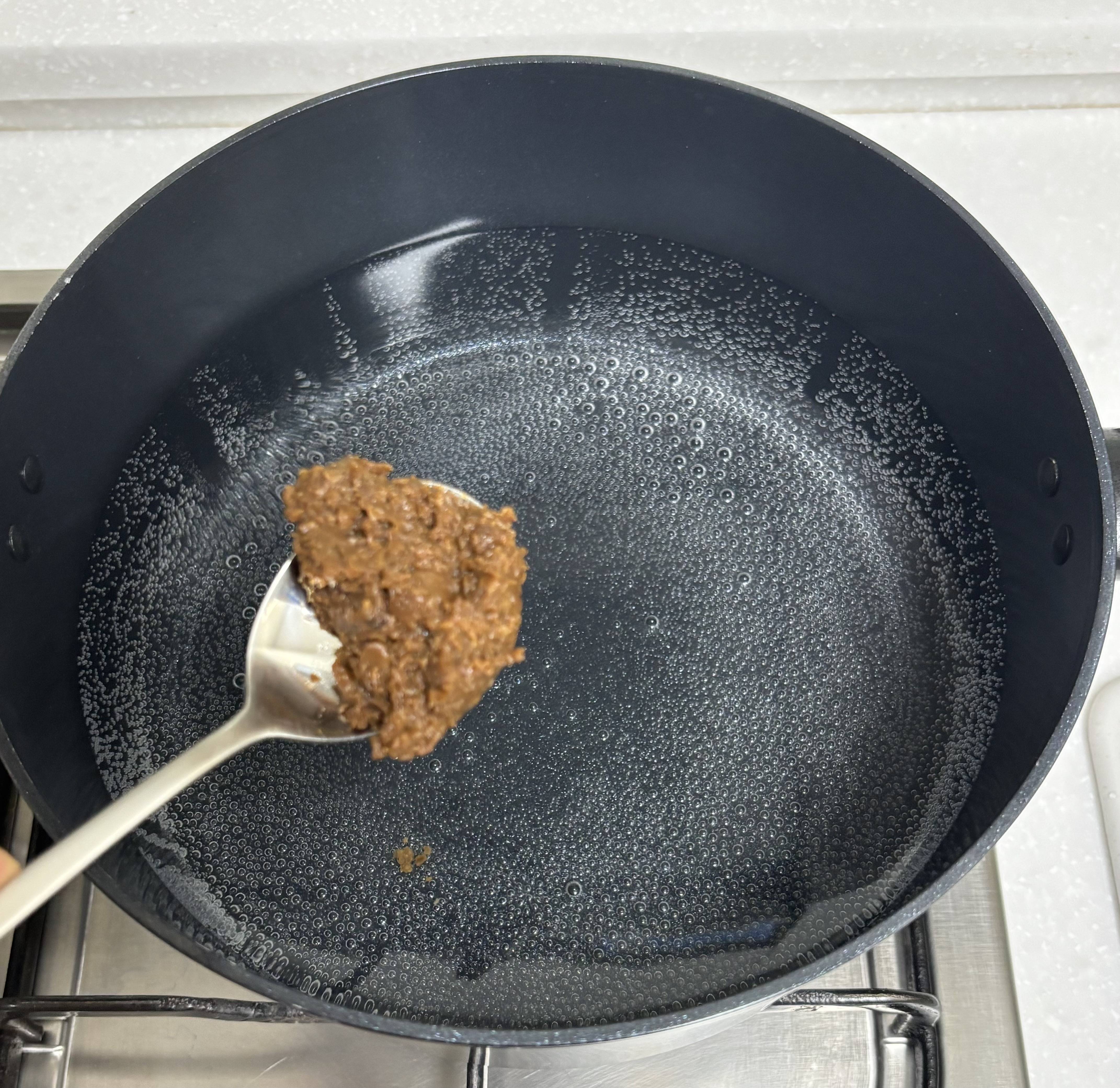 된장 1 큰술 , 소금 1 큰술 , 미원 1/2 큰술 , 간장 3 큰술