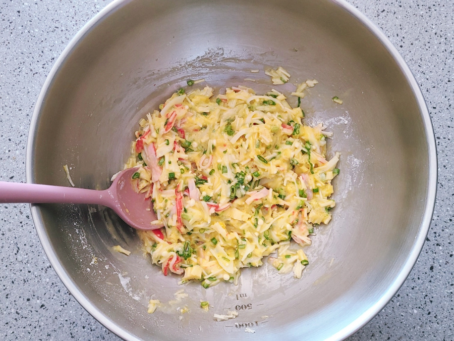 (크래미 팽이버섯전에 부추를 넣으면 좋은데 부추가 없어서 쪽파를 넣었어요)