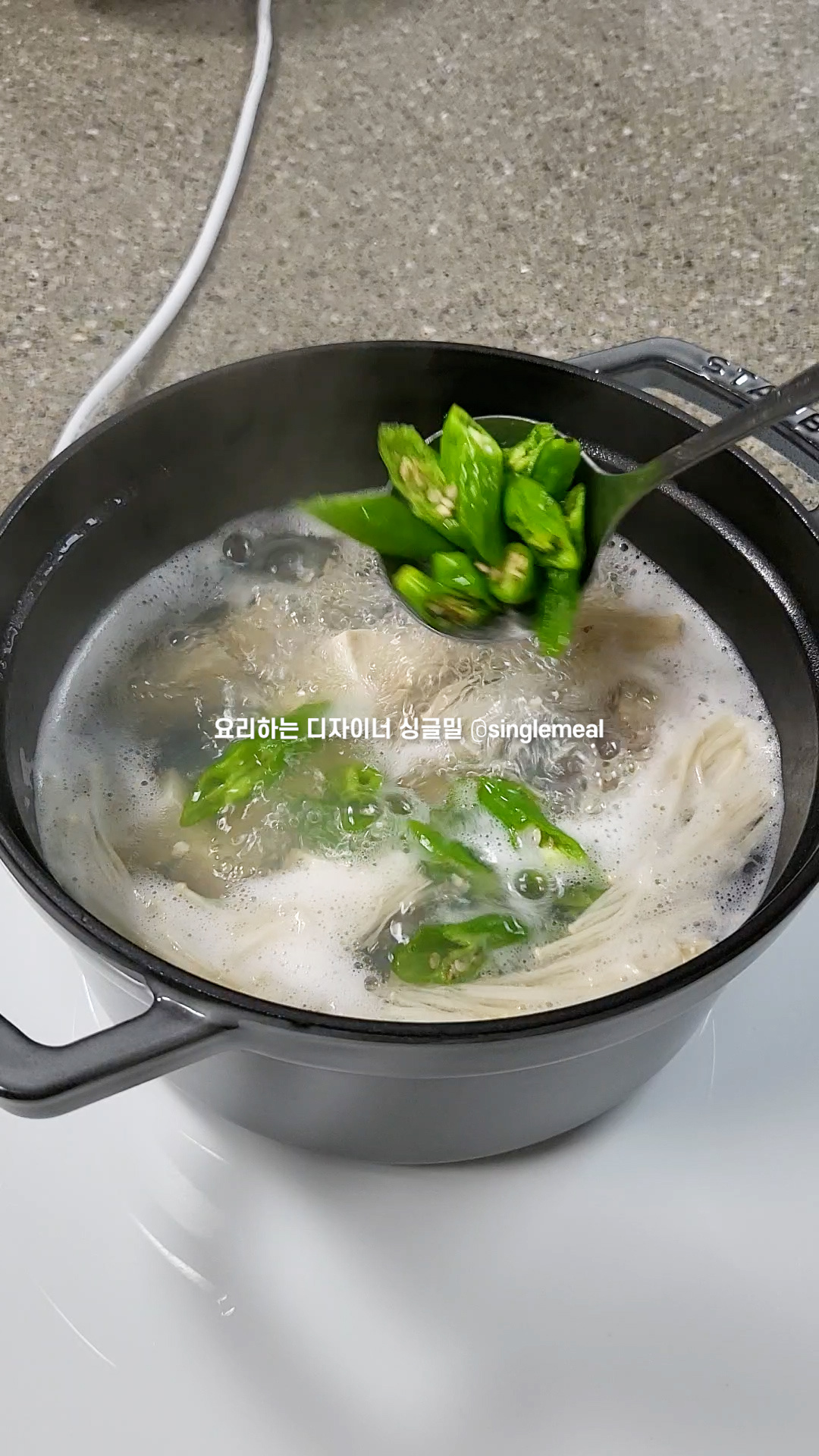 물론 칼칼한 청양고추도 좋은데, 냉장고에 이것밖에 없네요 ㅎㅎ