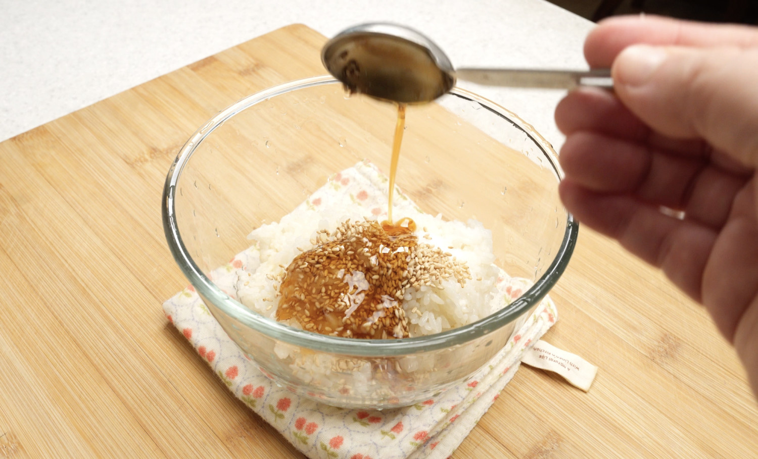 밥 1.5 공기 , 소금 1/3 작은술 , 참기름 1 큰술 , 통깨 1 큰술