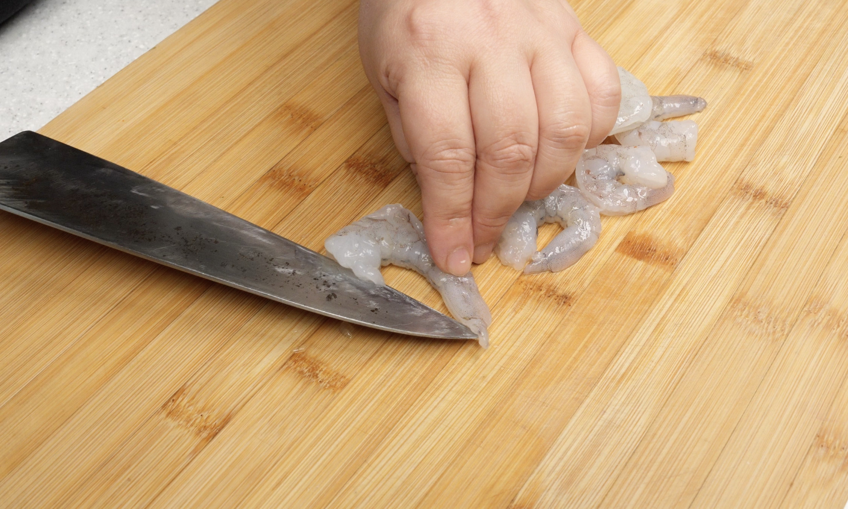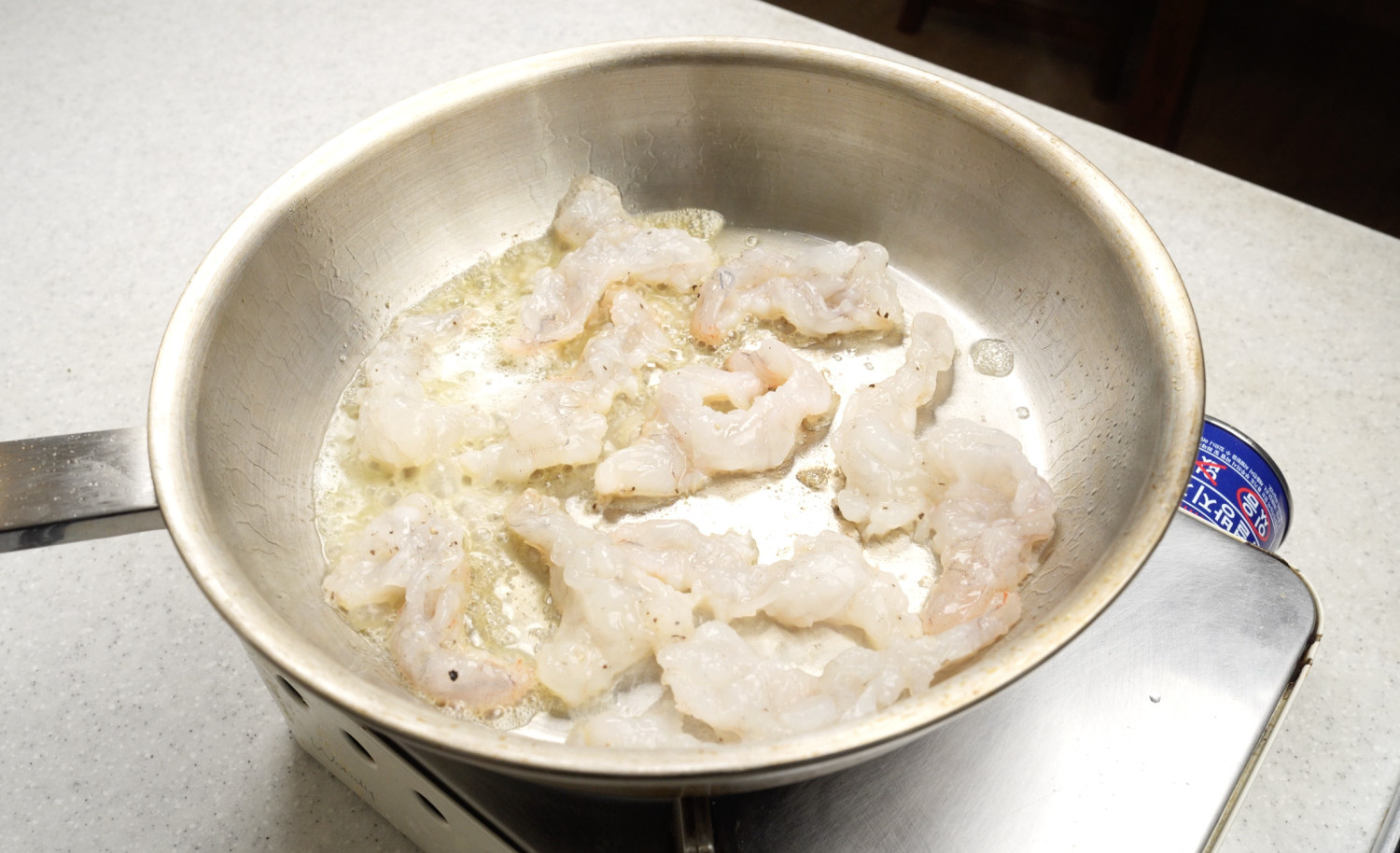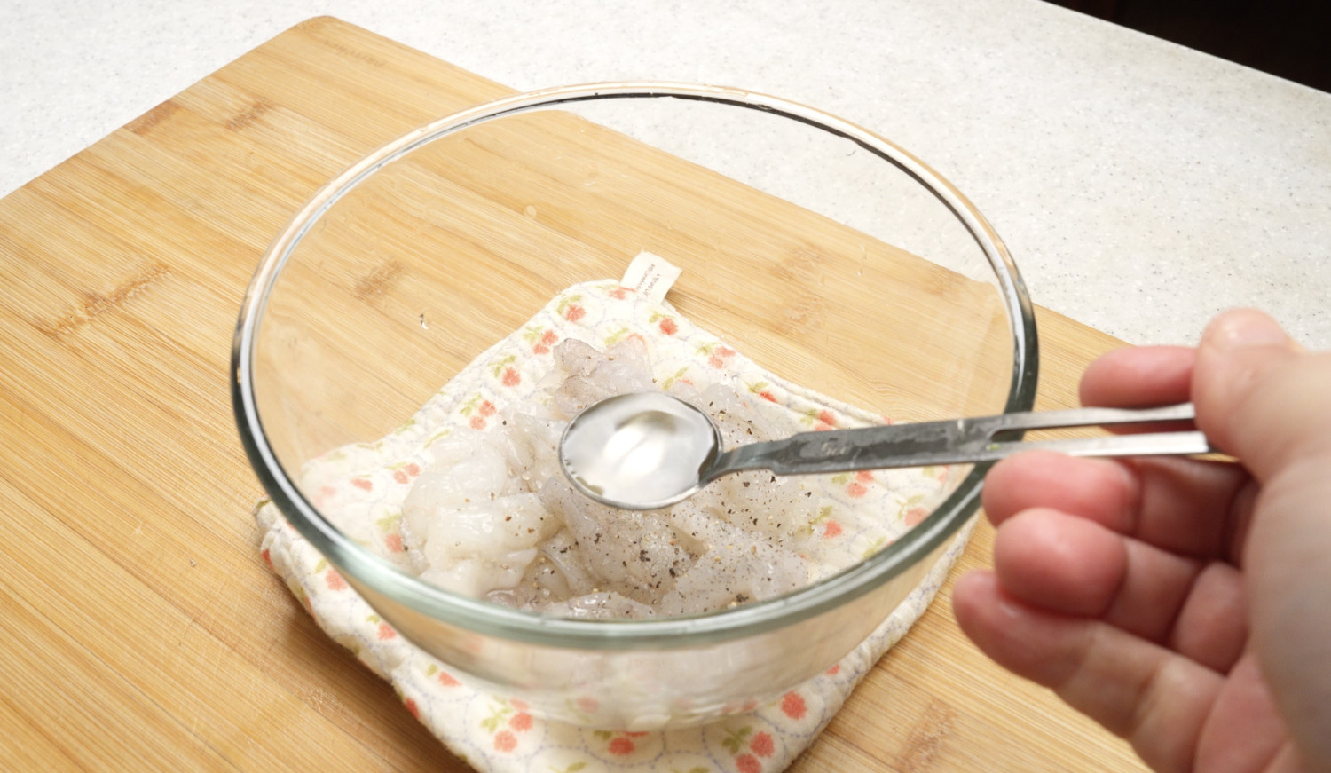 새우 200 g , 빨간파프리카 1/2 개 , 상추 5 장 , 단무지 5 줄 , 김 2.5 장 , 체다치즈 5 장 , 소금 , 후추 3~4 꼬집 , 맛술 1 작은술