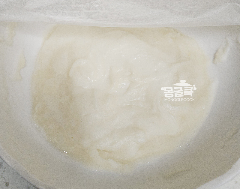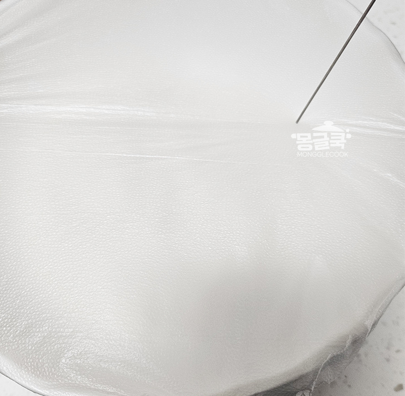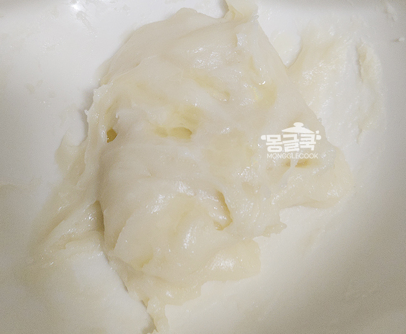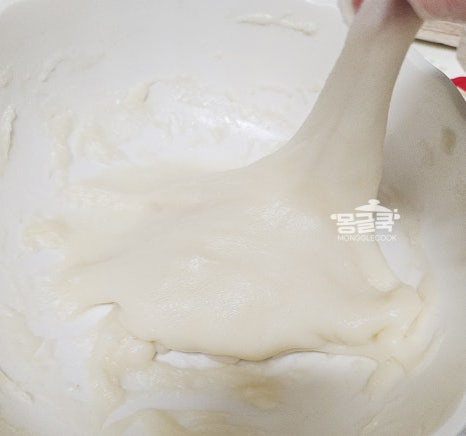 반죽이 투명해지고 덩어리가 생기면 완성!