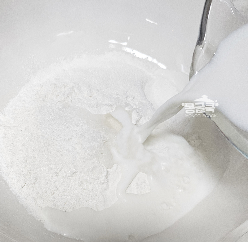 찹쌀가루 속 전분이 뜨거운 우유(물)를 만나야 호화(익는 과정)가 시작되고,