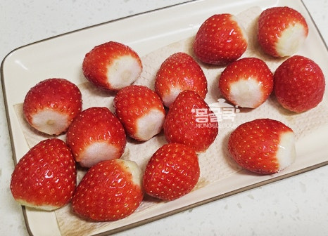 딸기는 깨끗하게 씻은 뒤 물기를 완전히 제거해 주세요.
