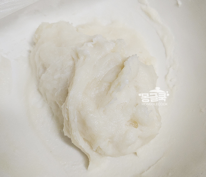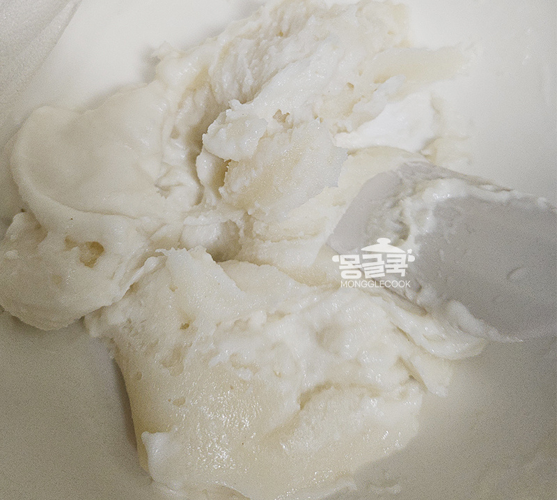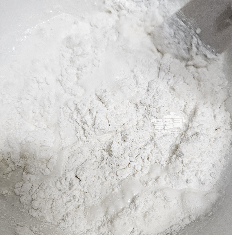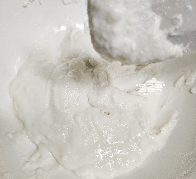 건식 찹쌀가루는 이미 건조된 상태라 충분한 수분과 열이 있어야 찰진 반죽이 돼요.