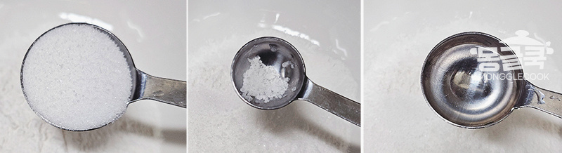 볼에 찹쌀가루, 설탕, 소금을 넣고 고루 섞어 주세요.