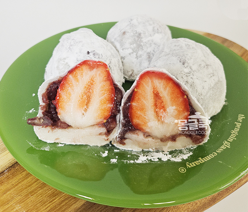 딸기가 보이지 않도록 완전히 동글동글한 팥앙금 딸기볼로 만들어주세요.