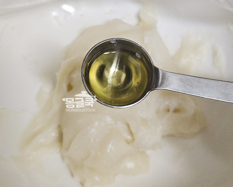 익은 반죽에 식용유 1/2작은술(선택)을 넣어주세요.