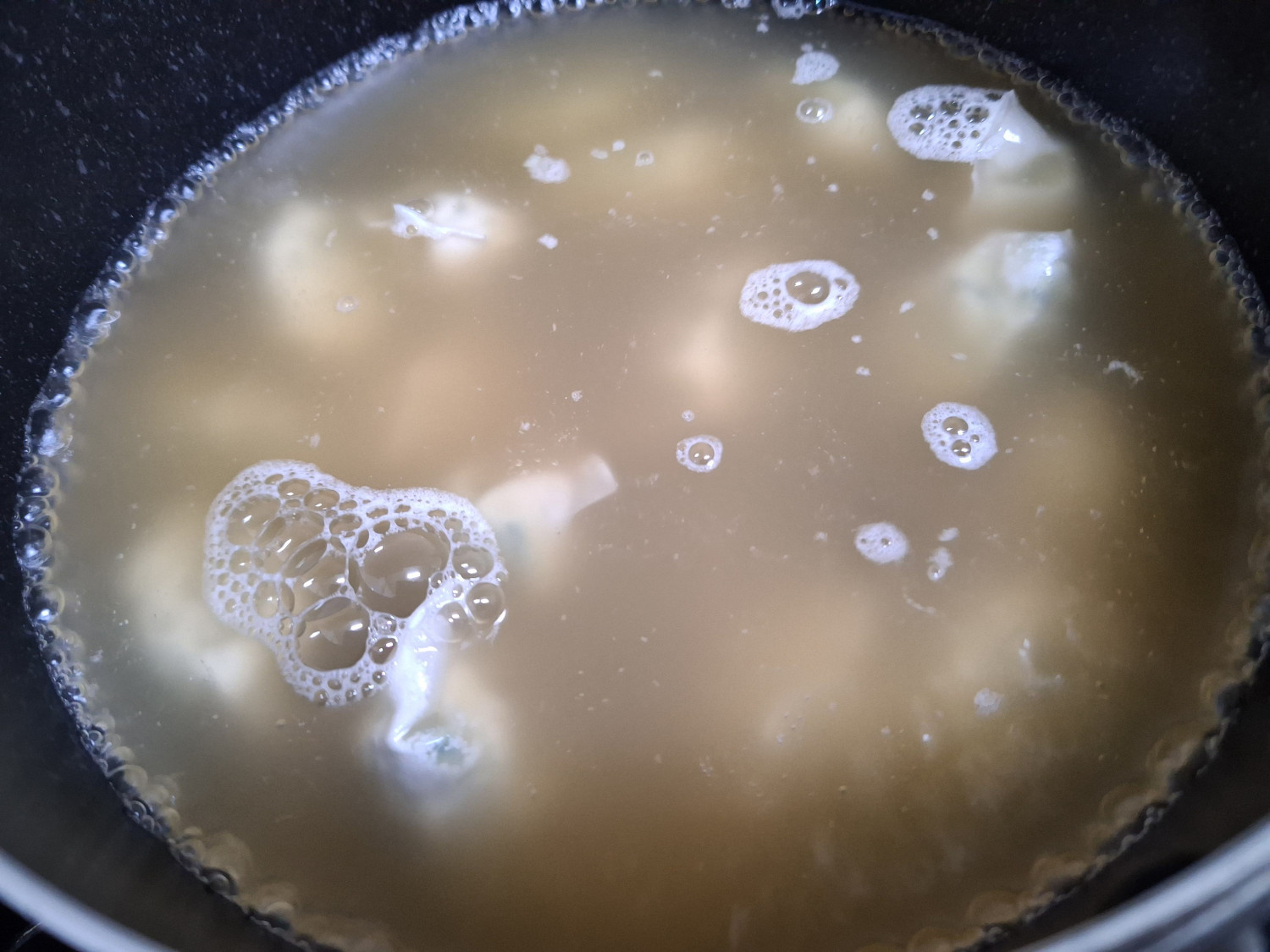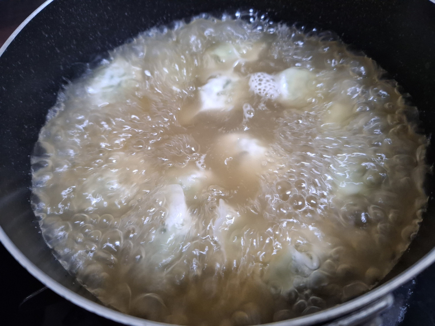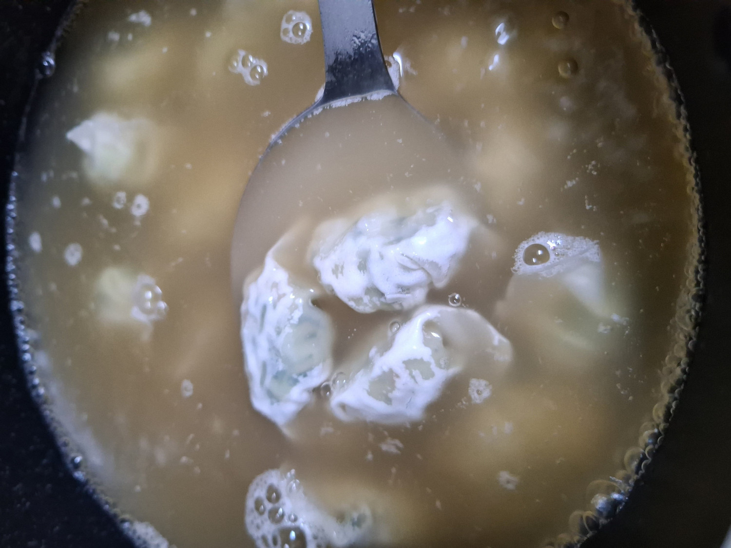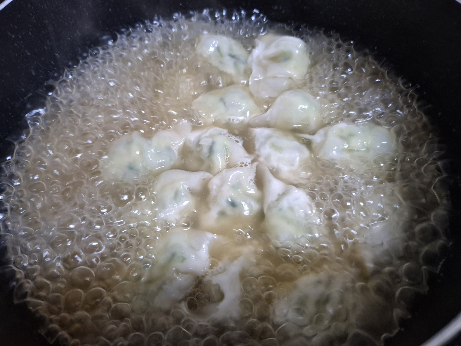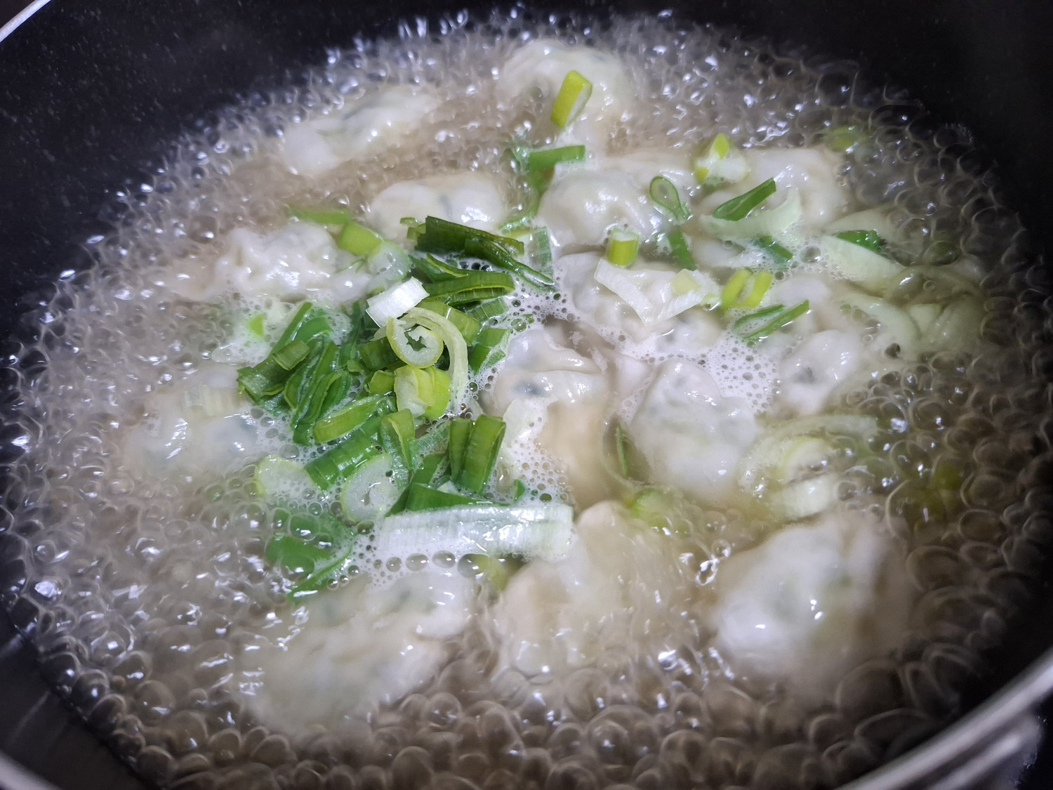 물만두가 통통하게 부풀어 오를때까지 약 4분간 끓여줍니다.
