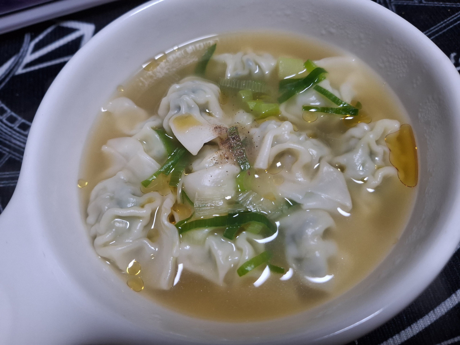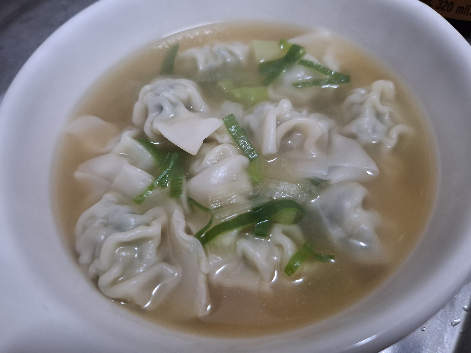 냉동물만두 16 개 , 대파 25 g , 참기름 1 티스푼 , 후추 한꼬집